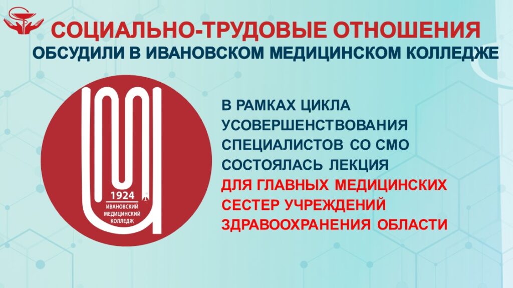 1 апреля заведующий отделом социально-трудовых отношений регионального союза «Ивановское областное объединений организаций профсоюзов» ТИМОХОВА Татьяна Владимировна прочитала лекцию для главных медицинских сестер, проходящих обучение на цикле усовершенствования в Ивановском медицинском колледже по вопросам социального партнерства.