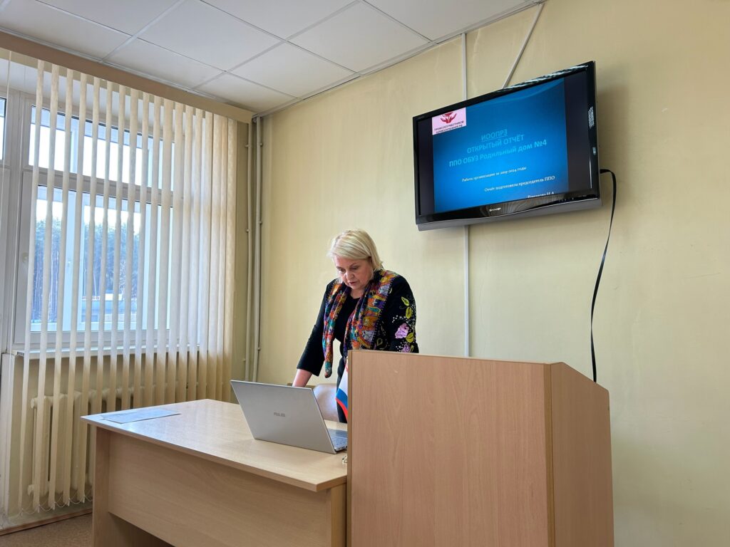 Председатель первички РОМАНОВА Наталья Альбертовна рассказала о деятельности профсоюзной организации за прошедшие шесть лет, сделав акцент на возможностях, предоставляемых профсоюзным членством