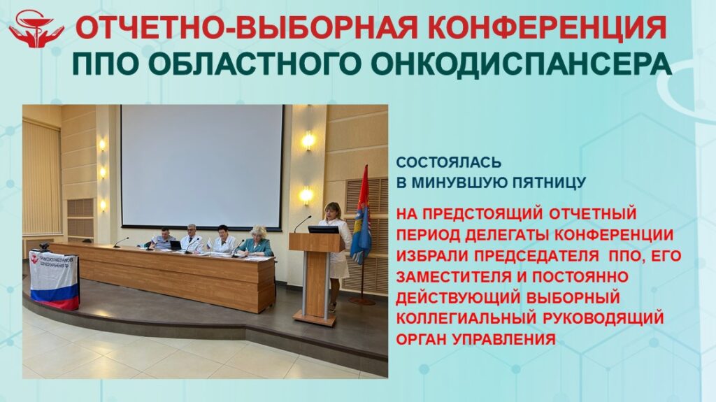 В приветственном слове к делегатам конференции председатель областной организации ВАЦУРО Г.В. отметила важнейшую цель первички на предстоящий отчетный период — увеличение количества членов Профсоюза до 51% — именно в этом случае Профсоюз может действовать от имени рабочего коллектива, защищая законные права и интересы медицинских работников.