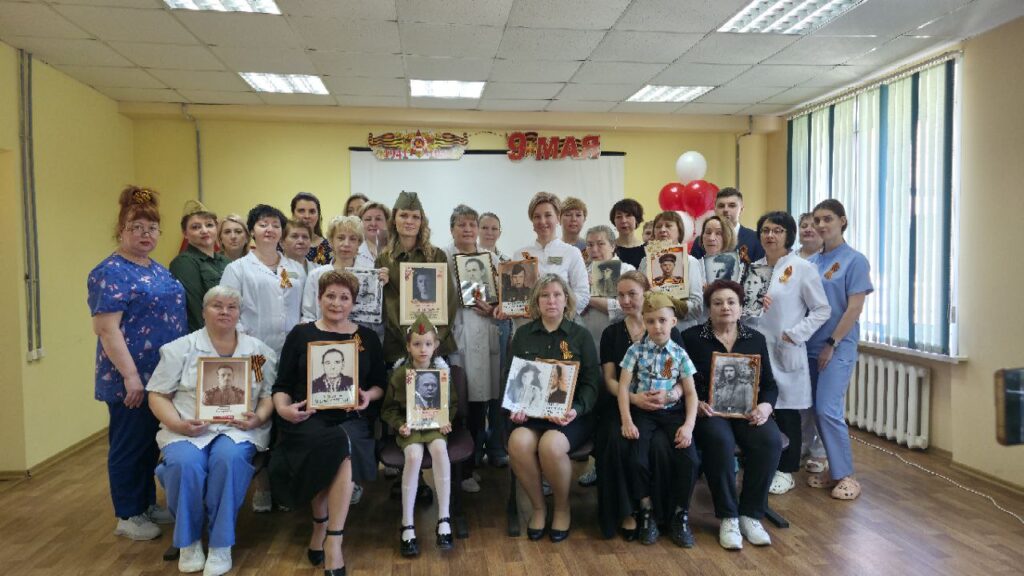 Вместе со всей страной работники больницы присоединились к акции «Бессмертный полк»: сотрудники лечебного учреждения пришли на конференцию с портретами своих героев, сражавшихся против фашизма за свободу и независимость нашей Родины.