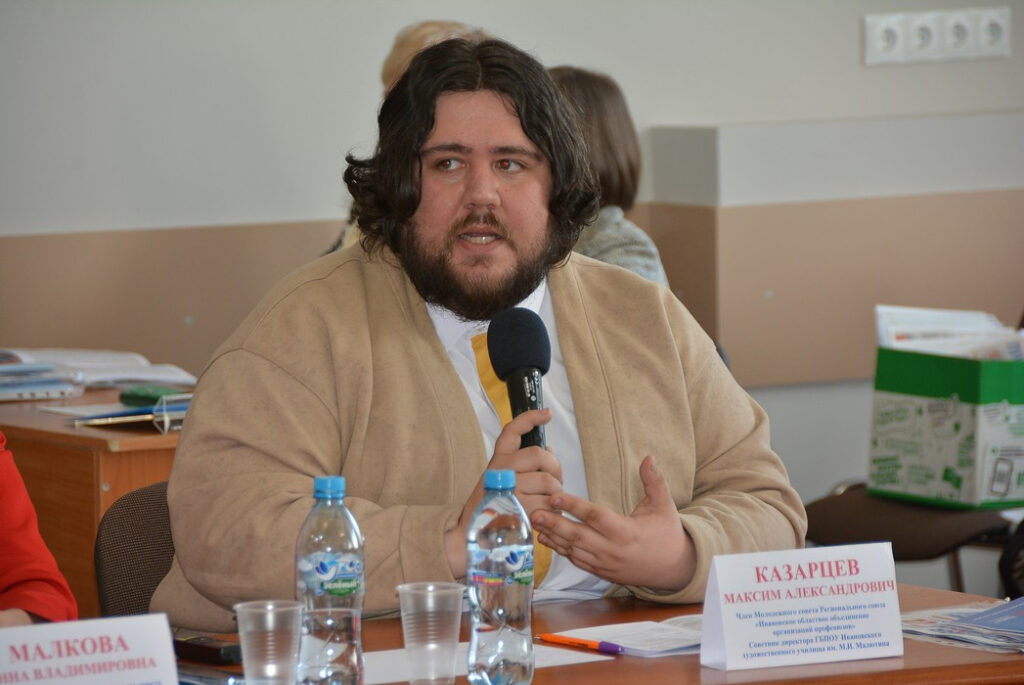 Анна Малкова, заместитель Председателя Молодежного совета ИОООП и Максим Казарцев, член Молодежного ИОООП, советник директора Ивановского художественного училища поделились опытом молодежной работы в профсоюзах.