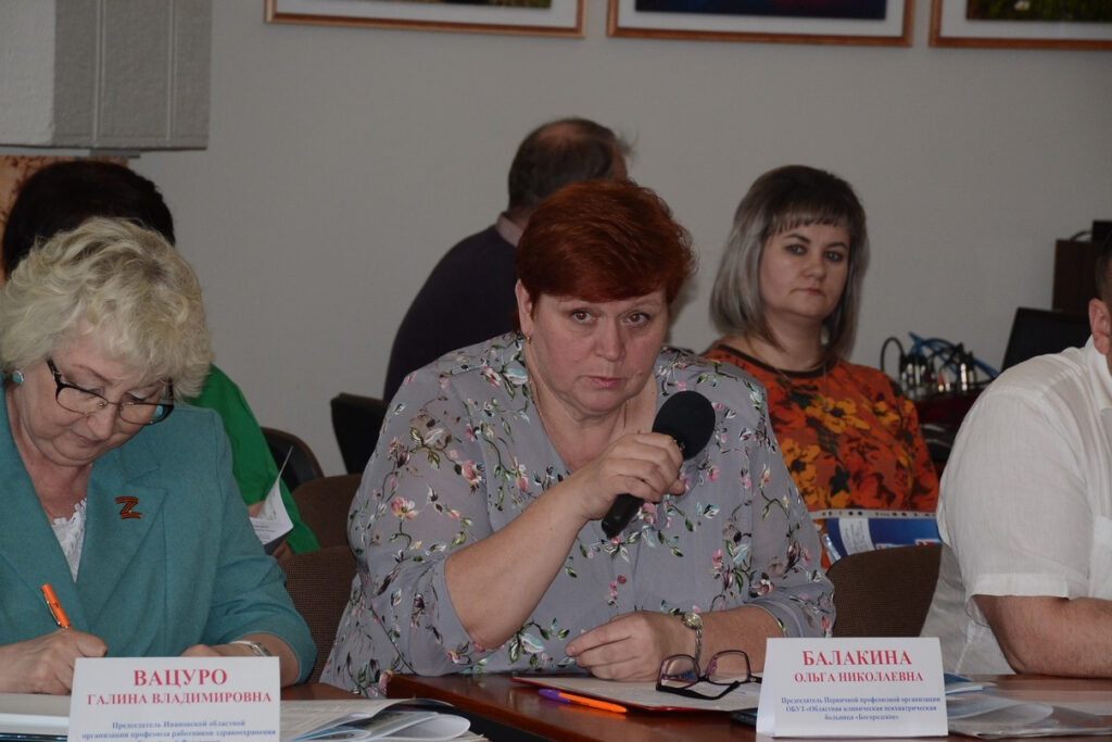 Татьяна Житлова, председатель Ивановской областной организации профсоюза работников жизнеобеспечения, подчеркнула роль коллективного договора. Елена Воробьева, председатель Ивановской областной организации «Всероссийский Электропрофсоюз», также отметила важность коллективного договора и затронула проблему выгорания среди председателей ППО.
